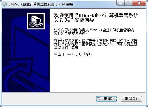 1.到本站下载安装EMwork,打开安装程序,点击下一步继续安装