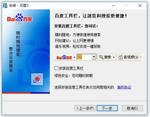 选择是否安装百度工具栏,进行下一步,