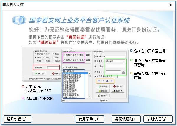 首次登录国泰君安大智慧会要求进行身份认证,身份认证可以把交易客户和非交易客户、高价值和普通客户予以区分,进行针对性服务,所以建议大家主动通过身份认证(非国泰君安网上交易客户可以跳过认证),认证方法如下: