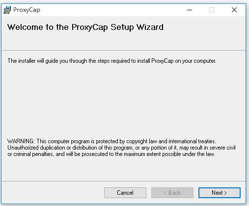 下载ProxyCaptor,解压压缩包,双击.exe文件,弹出界面,根据向导操作,
