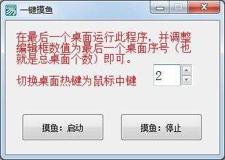 在最后一个桌面运行此程序,然后编辑框调节为最后一个桌面,点击摸鱼启动按钮。启动后程序只有托盘图标,单击图标显示界面,双击则退出程序。
