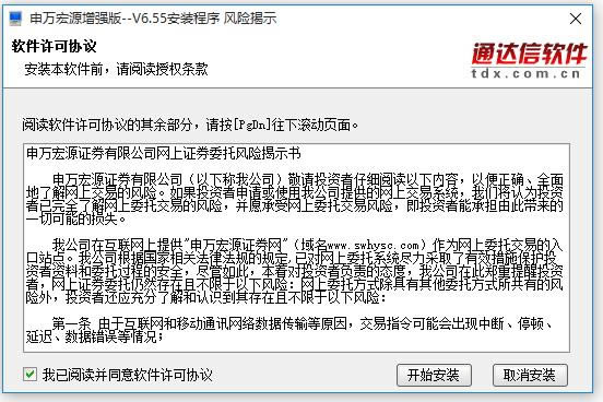 下载申万宏源证券增强版,解压压缩包,双击.exe文件,弹出界面,阅读协议并同意,