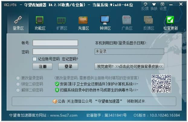 游戏守望者加速器破解版是一款计算机系统变速软件,它可以调节系统整体频率的运行速度,主要通过修改电脑时钟频率、让电脑误认为时间变快了,从而加快电脑中所有程序的运行速度。软件目前支持市面上所有系统,可以用于Windows系统频率变速测试、硬件性能检测、编程开发Debug及Windows系统下软件与游戏快速测试之用!