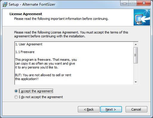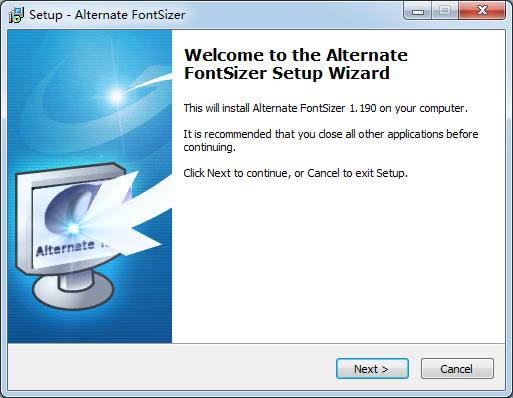 1.到本站下载安装Alternate FontSizer,打开安装程序,点击next继续安装