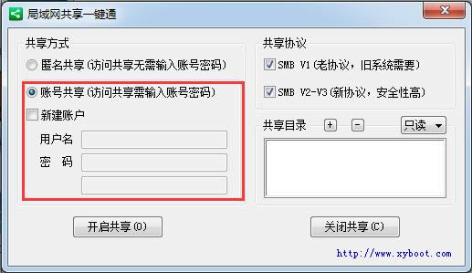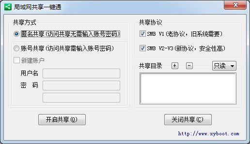 - 可一键设置匿名共享或账号共享;