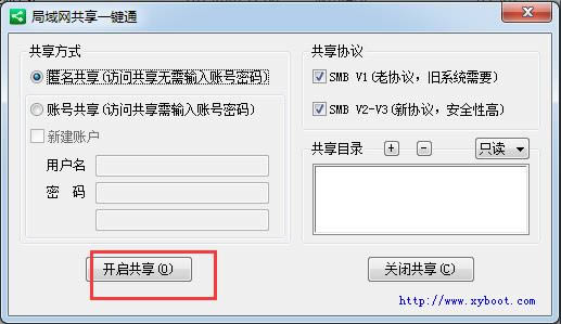 打开软件后,选择匿名共享,直接点击【开启共享】按钮即可