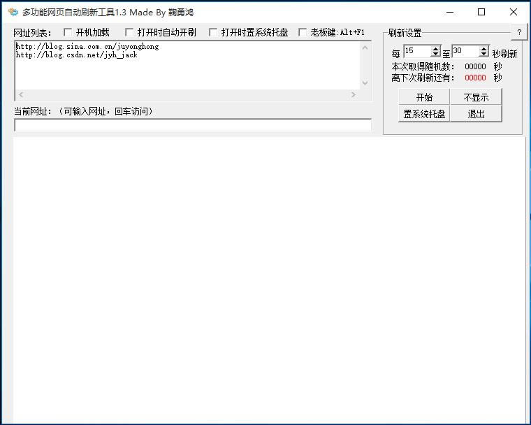 点击【开始】,软件即可自动刷新,【当前网址】一栏中会显示你之前输入的网址,如图,