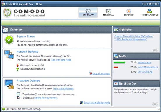 简单安装之后,Comodo Firewall会使您的电脑安全连接到互联网,软件针对网络攻击提供了完备的安全策略,可以迅速抵御黑客和网络欺诈。Comodo Firewall对于个人和商业用户都是完全免费的,推荐下载使用。