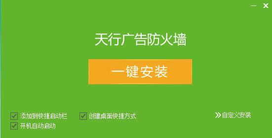 1.到本站下载安装天行广告防火墙,打开安装程序,选择一键安装或是自定义安装,注意默认勾选选项