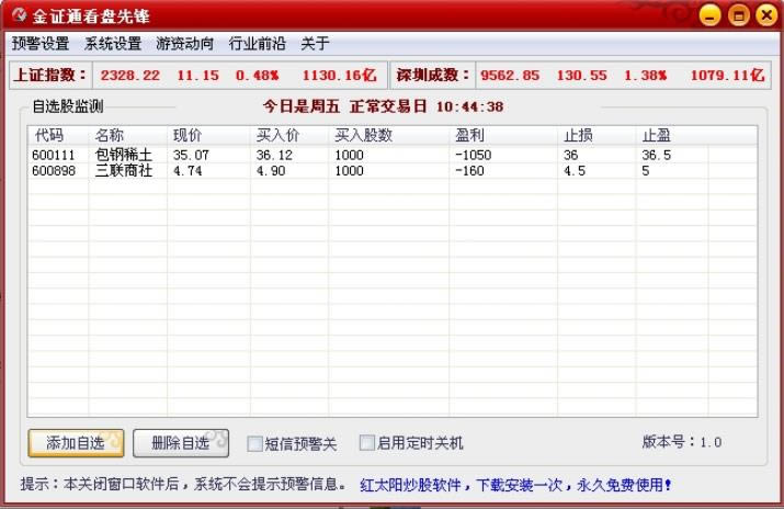 另外,金证通看盘先锋还会通过邮箱提示、让你随时随地了解所持股票的止赢止损的信息,使用极其方便。