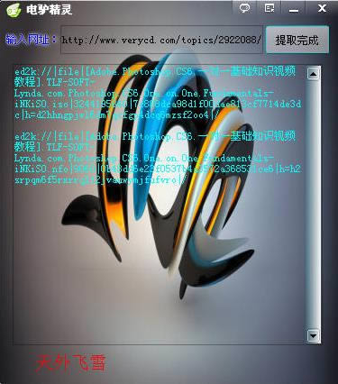 很多朋友会通过电驴资源精灵进行资料下载。知道电驴并喜欢在上面找资料的朋友都知道,由于知识产权的问题,现在基本上所有的资源链接已经被屏蔽了地址,但是,显然,地址还是存在的,只不过是被屏蔽了而已,现在,电驴资源提取精灵就可以轻松的帮我们提取出这些资源的电驴地址,方便用户快速下载。