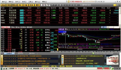 金汇通黄金行情分析软件系统提供了极为齐全和强大的分析功能。内置一百多种各类指标公式,包括所有经典技术指标。分时图上的个股量比指标、大盘涨跌率、买卖力道副图、十种系统分析周期以及多日线周期、复权处理、多种数值坐标和时间坐标、多种主图、多指标信号叠加、移动成本分布、等众多强大的分析功能。系统的各个分析界面都有合理的快捷键与右键菜单及快捷页签,还有及时的联机帮助,在各界面都可以随意快捷地转向所需查看的界面。操作方式与界面布局符合大众习惯,易学易用。