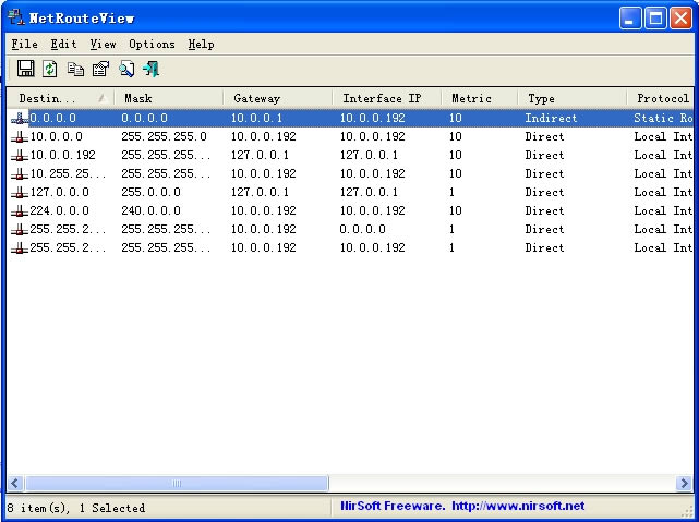 显示了当前网络上的所有路线清单,包括目的地,掩码,网关,接口的IP地址,公制值,类型,协议。NetRouteView主窗口显示您的所有网络路由列表,如'打印'在Windows路由实用程序的命令。你可以选择一个路线,然后将其删除(Del键)或修改它(按Ctrl + M)的。请注意,与'静态路由在本议定书仅列值的路线,可以删除或修改。您也可以通过使用'新干线'选项(按Ctrl + N)的一个新的路径。