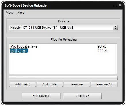 Soft4Boost Device Uploader是一个向导式的应用程序,它允许您从您的个人电脑上传到您的移动设备媒体文件。轻松上传文件和文件夹与媒体内容的各种便携式设备,苹果设备(iPod,iPhone,ipad iPod-touch,),索尼PSP,爱可视DVR,黑莓珍珠,三星的球员,创造性的球员,艾利和,SanDisk Sansa,爱普生,爱欧迪X5,便携式媒体播放器(PMP),并对GSM手机CDMA网络。soft4boost装置上传支持传输通过蓝牙,红外,USB。管理文件和文件夹在您的便携式装置。直观地判断的内容上传过程进展。