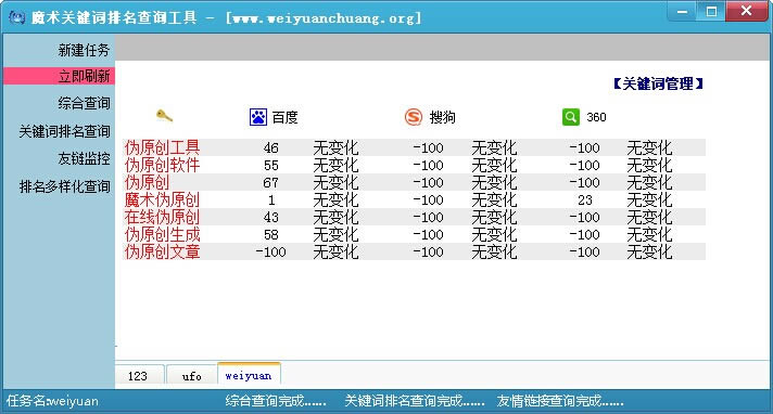魔术关键词排名查询工具是一款非常实用的站长工具,它能做到网站排名的管理、关键词的百度指数查询、支持批量检测友情链接等各种强大的网站推广优化功能,能比其他站长工具更加有效的展示每天的网站数据分析,是站长的必备的工具。