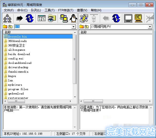 两台电脑上都必须安装《局域网信使》软件,注意软件版本号必须一致