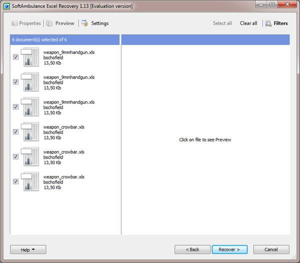 从所有 Microsoft 版本恢复所有 MS Excel 文件格式,并支持 Apache Open Office/Star Office Calc 和 Corel WordPerfect Quattro Pro 文件。